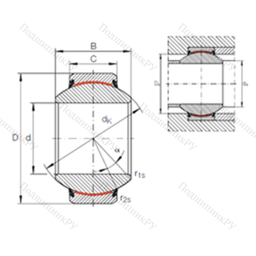 Подшипник скольжения сферический GE 180 FW-2RS