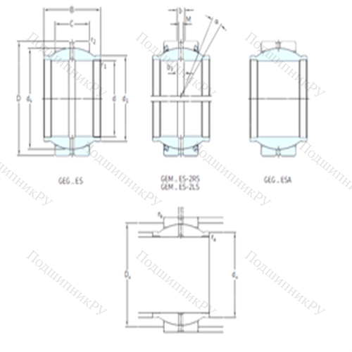 Подшипник скольжения сферический GEG32ES конструкция которого представлена внешним кольцом, внутри вращается внутренняя обойма. Существуют прямые, шарнирные (самовыравнивающиеся), угловые, гидравлические, двойные шарикоподшипниковые и роликоподшипниковые варианты исполнения. Отдельные разновидности изделий (с парой трения «сталь – сталь») нуждаются в обслуживании и имеют каналы для подачи смазки, в то время как другие не нуждаются в ТО. В первом случает система включает в себя пару стальных шин, обработанную предварительно фосфатами и дисульфитом молибдена. Необслуживаемые модели покрываются политетрафторэтиленом, армируются медью и дополнительно усиливаются хромом.