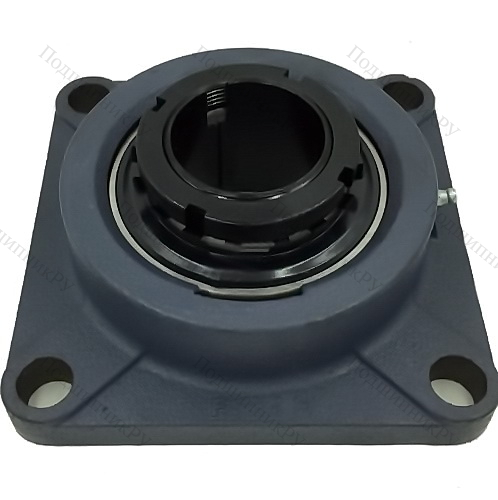 Фланцевого корпуса типа F (по классификации FKL), квадратного сечения с 4 отверстиями под болты. Устанавливается на вертикальные опорные поверхности. Иными брендами маркируется иначе. Пример: SKF – FY(J), FAG – FG56, INA – CF/CJ, NSK и NTN – F.