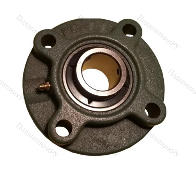 Фланцевая гильза из чугуна или стали оснащена корпусным радиальным шарикоподшипником UC-серии, имеющим внутреннюю обойму удлиненного вида и винтовой стопорной крепеж. Монтаж детали осуществляется методом подгонки.